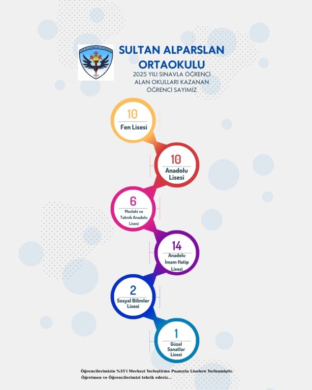 ÖRENCİLERİMİZİN %35İ MERKEZİ YERLEŞTİRME PUANI İLE LİSELERE YERLEŞMİŞTİR. ÖĞRETMEN VE ÖĞRENCİLERİMİZİ TEBRİK EDERİZ.